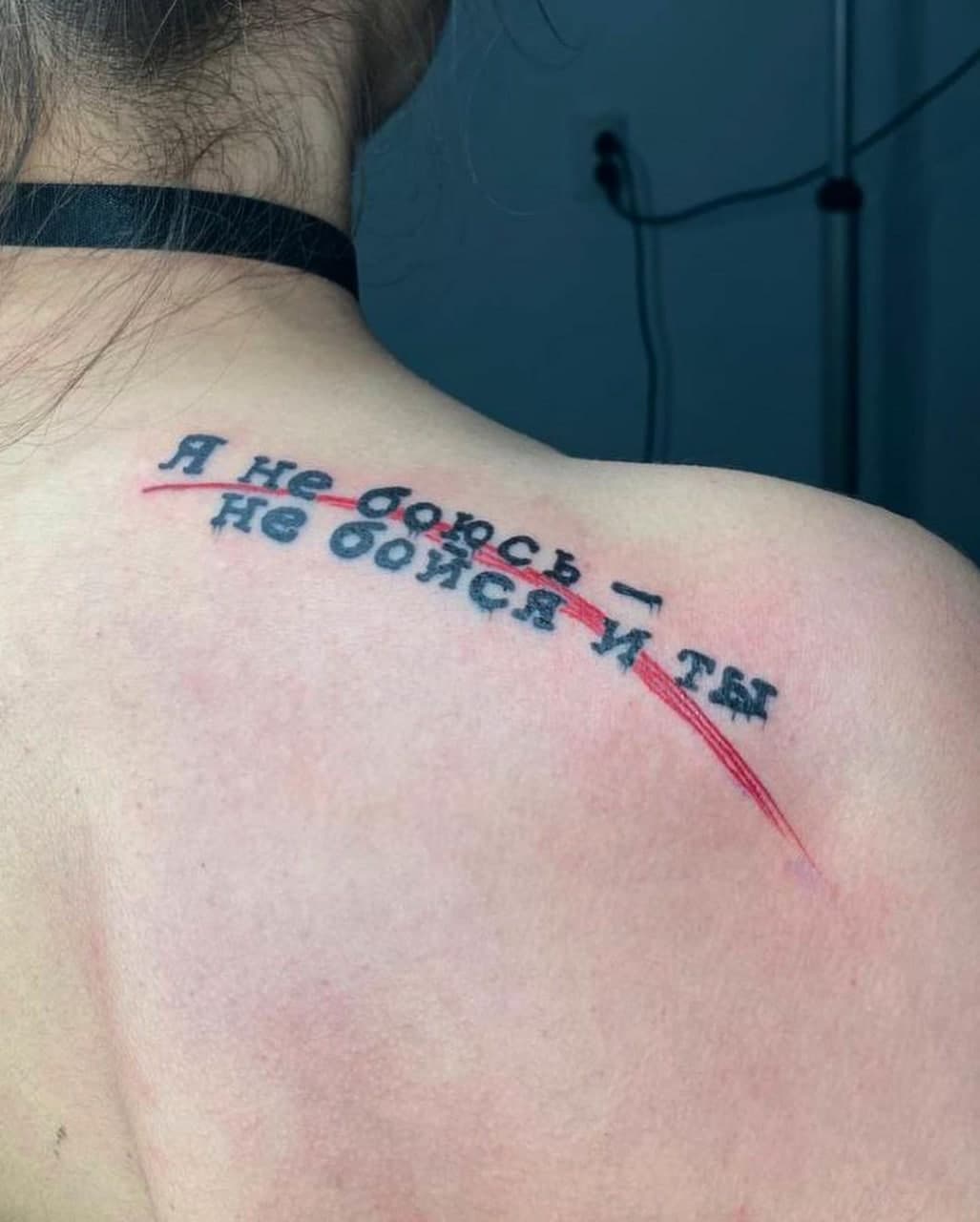 — Первую татуировку набила около двух месяцев назад. Страх — это то, с чем я имею дело ежедневно, даже уехав, ведь я каждый день встречаю здесь беларусов, которые подверглись пыткам, которые бежали из страны болотами и лесами, которые были вынуждены бросить все. В одном сериале один из героев сказал: «Трусость — это не когда ты боишься, а когда ты знаешь, что нужно сделать, но не делаешь». Я очень хотела, чтобы, увидев эту татуировку, каждый почувствовал, что он не один, что нас много. Возможно, если бы каждый сказал другому эту фразу, когда всем стало неописуемо страшно и многие отступили, мы смогли бы сейчас вернуться домой.