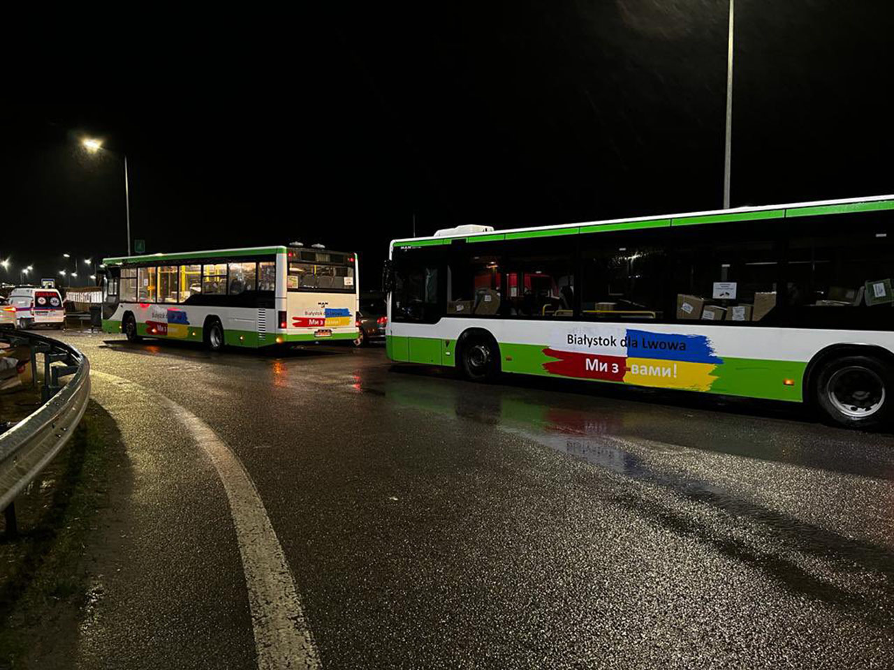 Львоўскія мясцовыя ўлады запыталі таксама дапамогу ў выглядзе аўтобусаў. Беласток адгукнуўся на просьбу ўкраінскага горада, два аўтобусы 2006 і 2009 года вытворчасці ўжо прыбылі ва Украіну.