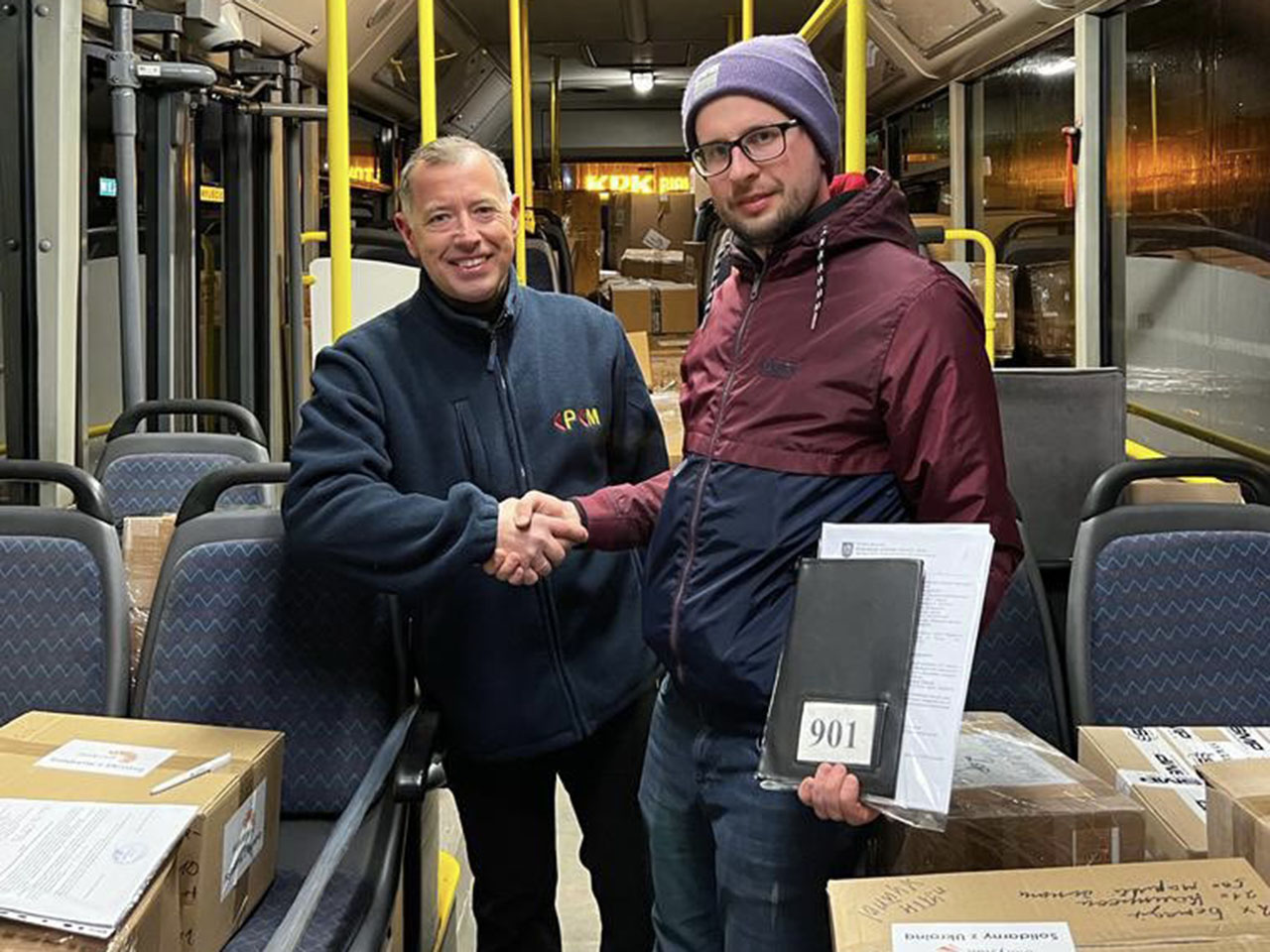 Два аўтобусы з гуманітарнай дапамогай у ноч на 1 красавіка прыехалі з Беластока ў Львоў. Аўтобусы прывезлі прадукты харчавання працяглага карыстання, сродкі асабістай гігіены, спальныя мяшкі.