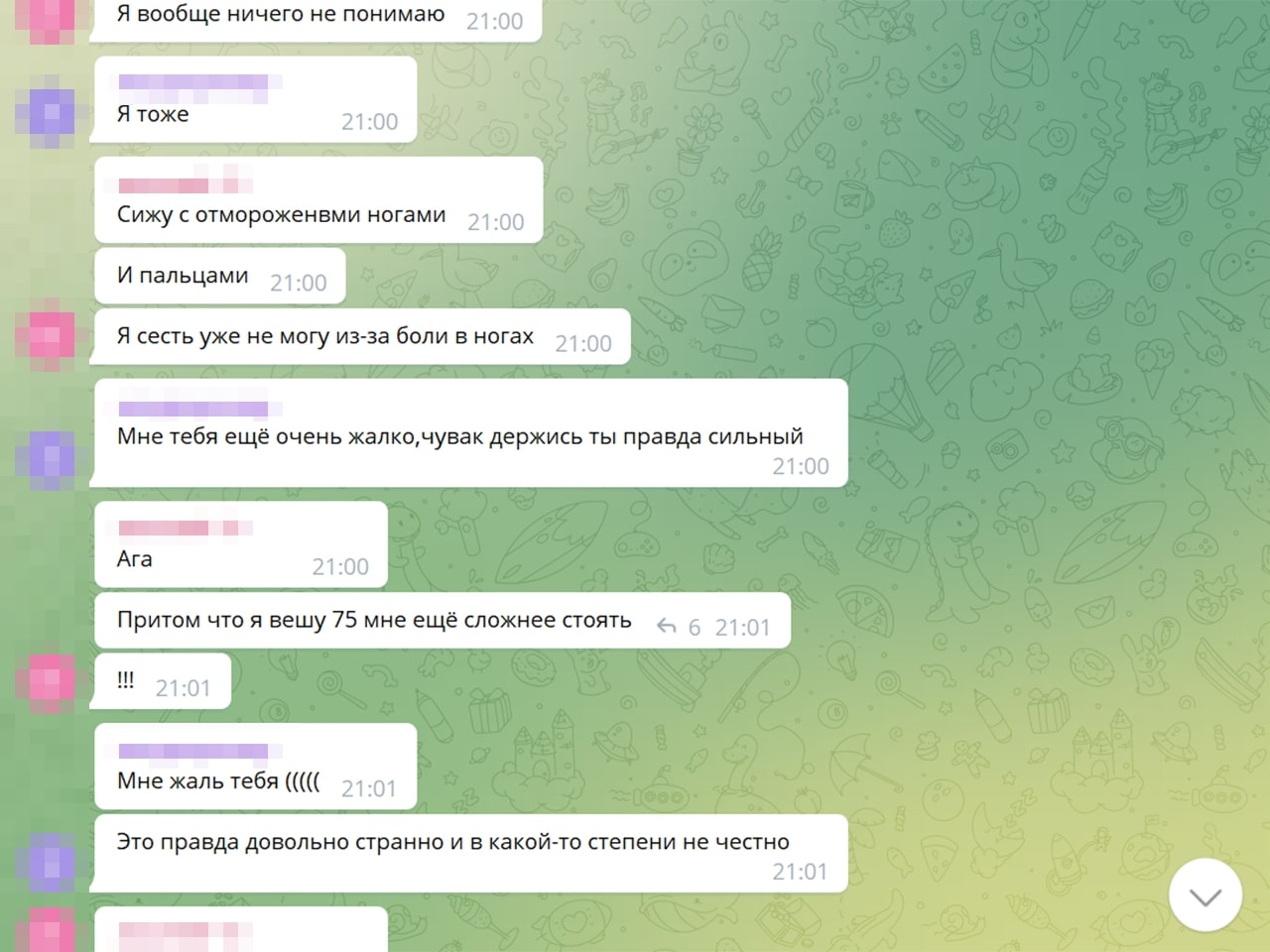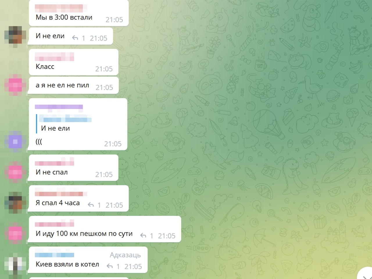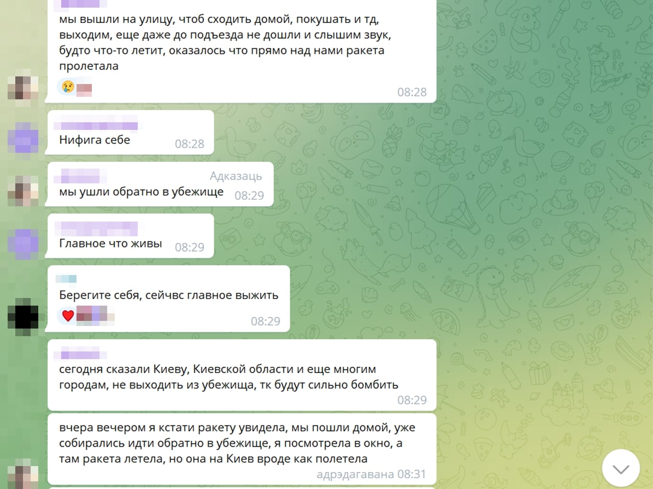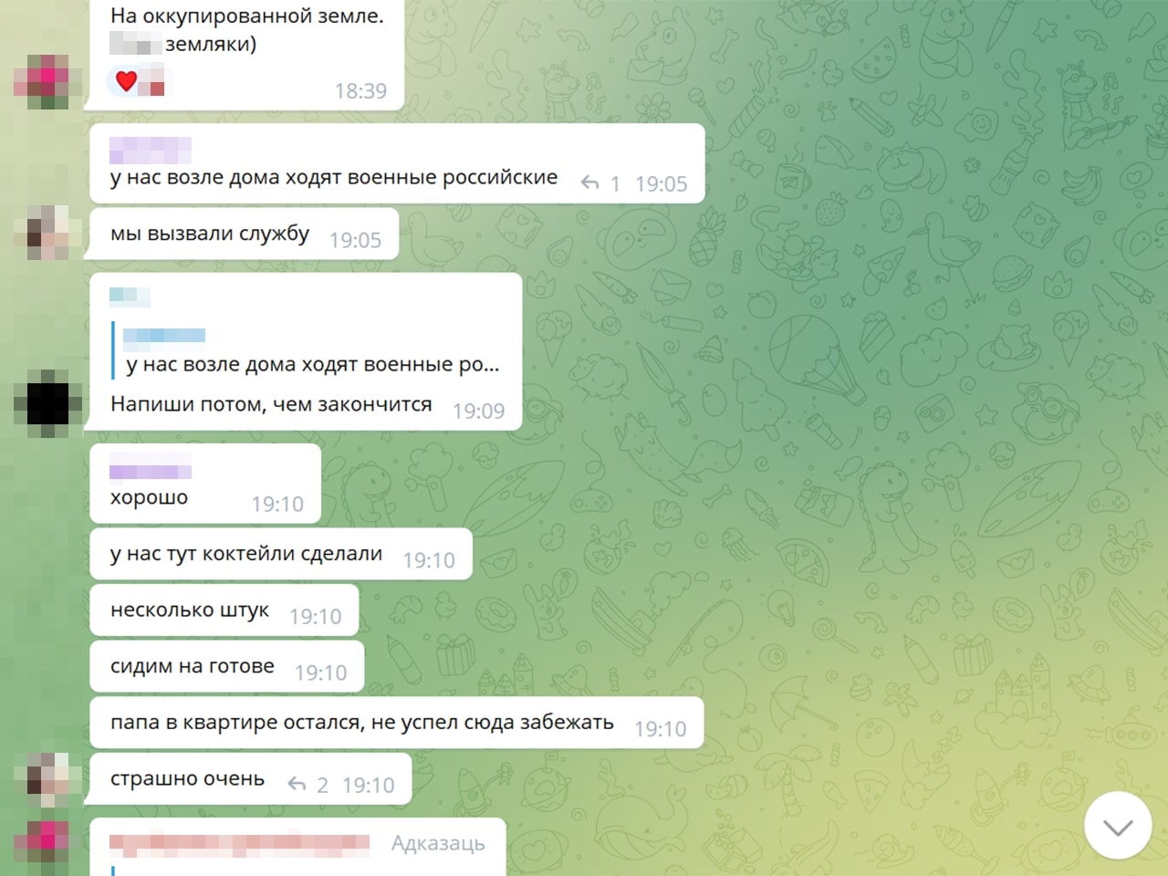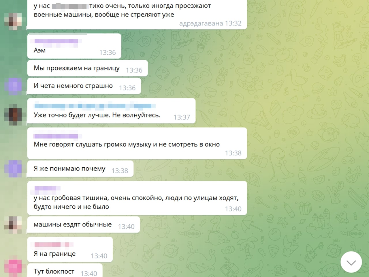 — Калі чытаю дзіцячы чат — ну гэта сапраўдныя хронікі вайны. Там відаць, як гэта ўсё ўспрымаюць дзеці. Напрыклад: «у нас выбіла вокны, тата сказаў, што я буду спаць у куртцы ў калідоры, але я не расстройваюся, пайду з’ем булачку». Пра тое, што не могуць выехаць, што мама ўвесь час плача. Нехта едзе з Украіны, іншыя пішуць: «ну як вы, дзе?», ведаючы, што расстрэльваюць гуманітарныя калідоры. Расказваю, і мурашы па скуры.