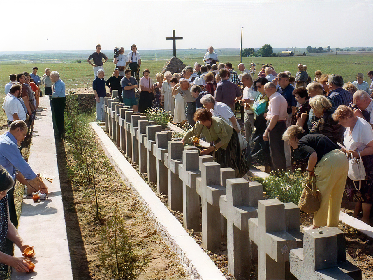 Пахаванне загінулых польскіх жаўнераў, праз страх мясцовых жыхароў перад саветамі, адбылося не на мясцовых могілках, а на полі, каля могілак паўстанцаў 1863 года, з удзелам мясцовага святара літоўскай нацыянальнасці. У савецкія часы мясцовыя жыхары не дапусцілі заараць магілу для калгаса. 8 верасня 1991 года польскія жаўнеры былі эксгумаваныя і пахаваныя на месцы, дзе спачываюць і цяпер. Беларускія ўлады далі згоду на крыж на магіле з надпісам на польскай мове, аднак адмовіліся падкрэсліць, што палякі ваявалі з НКВД.
