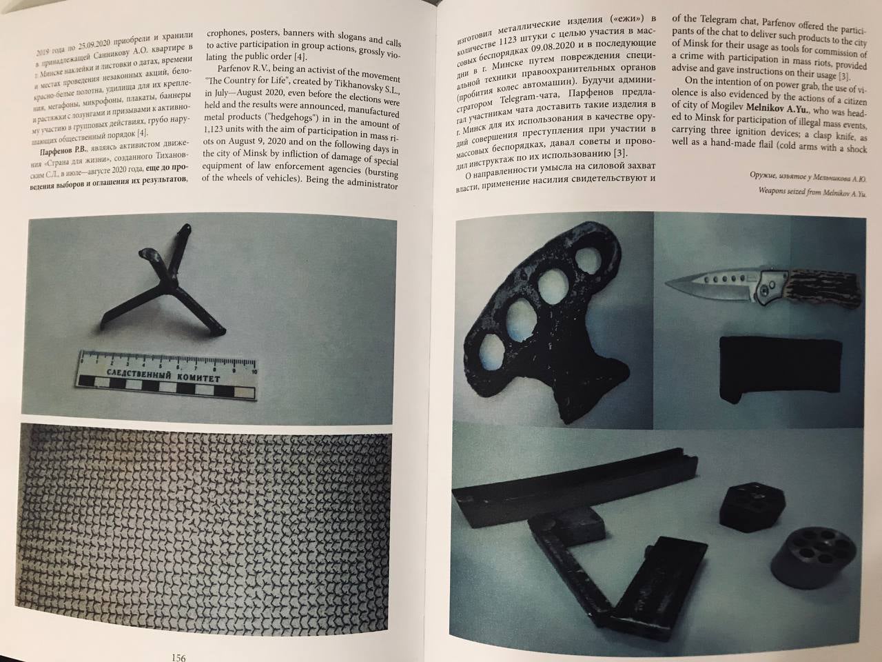 Далей — рэзкі пераход да 2020-га. Пра 80% у Лукашэнкі, АБСЕ і радыкалаў… Каляровы бонус на 30 старонак — пералік асобаў, асуджаных за «преступления под бело-красно-белым флагом». Ціханоўская, Латушка, Фядута, Борыс… А яшчэ выбарка з менш вядомых пратэстоўцаў: дзясятак чалавек, якія да 2020-га мелі судзімасці за разбой ці хуліганку.