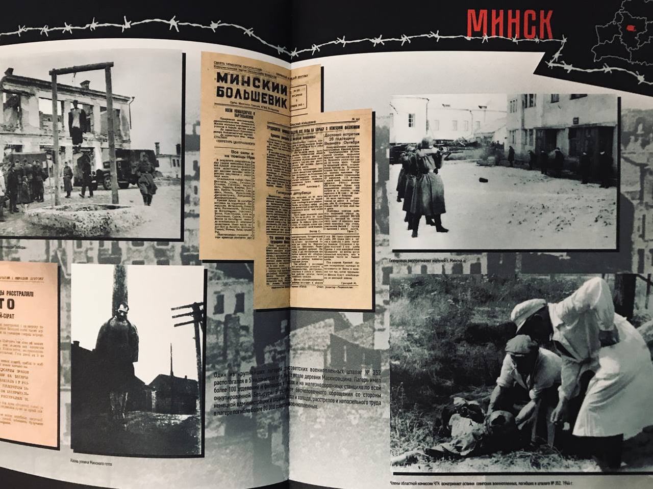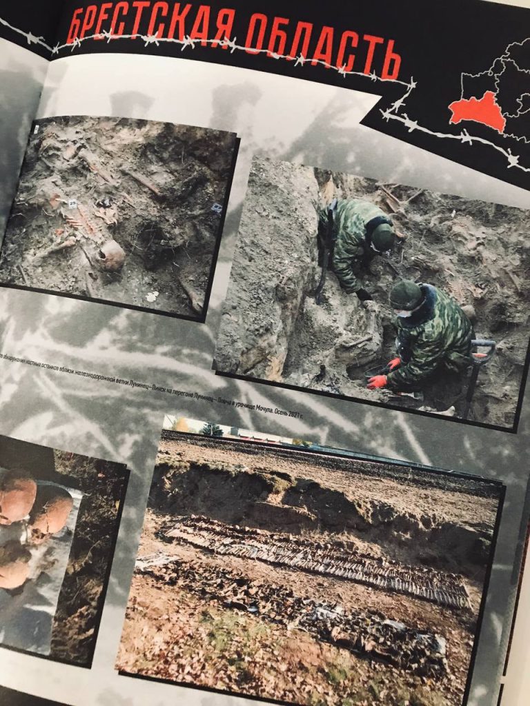 «Гістарычная» частка кнігі — гэта доўгі пералік, дзе, што і каго знішчалі нацысты. Тое, што ўжо мільён разоў мільгала ў зборніках «Памяць», падручніках гісторыі ды дакументальных фільмах. Час-почас базавыя звесткі дапаўняюцца свежымі фота супрацоўнікаў пракуратуры на месцах эксгумацыяў, за якія ўлады ўзяліся пасля 2020-га.