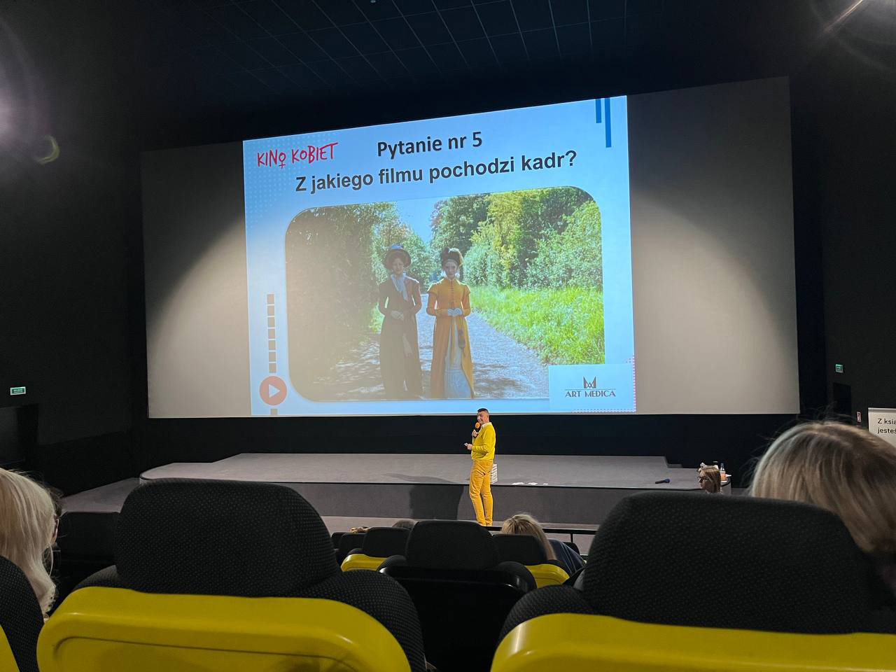 «Kino kobiet» — это один из проектов сети кинотеатров Helios, это всегда интересный фильм, специально отобранный для женской аудитории. Очередной кинопоказ прошел в кинотеатре в галерее «Юровецкой» 5 октября. В этот раз дресс-код был жёлтый, а фильмом вечера была выбрана американская комедия с Джулией Робертс и Джорджем Клуни «Билет в рай».