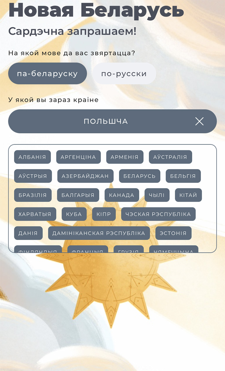 Интерфейс приложения доступен на русском и беларусском языках — подходящий можно указать в приветственном окошке. Там же нужно выбрать страну в которой вы находитесь, чтобы увидеть подходящий контент.