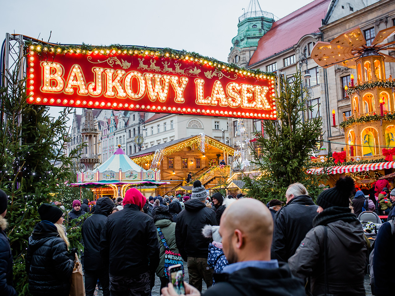 Одна из самых атмосферных и эффектных рождественских ярмарок в Польше проходит во Вроцлаве. Она привлекает своей красочностью и разнообразием. Уникальность вроцлавской ярмарки ценят во всей Европе, нередко там можно встретить туристов из Чехии, Германии и других стран. В этом году на ярмарке выставлено более 180 домиков с едой, напитками и сувенирами. Характерной особенностью рождественской ярмарки во Вроцлаве традиционно является парк аттракционов для детей «Сказочный лес» и ветряная мельница возле городской Ратуши. Посетить ярмарку можно до 31 декабря.