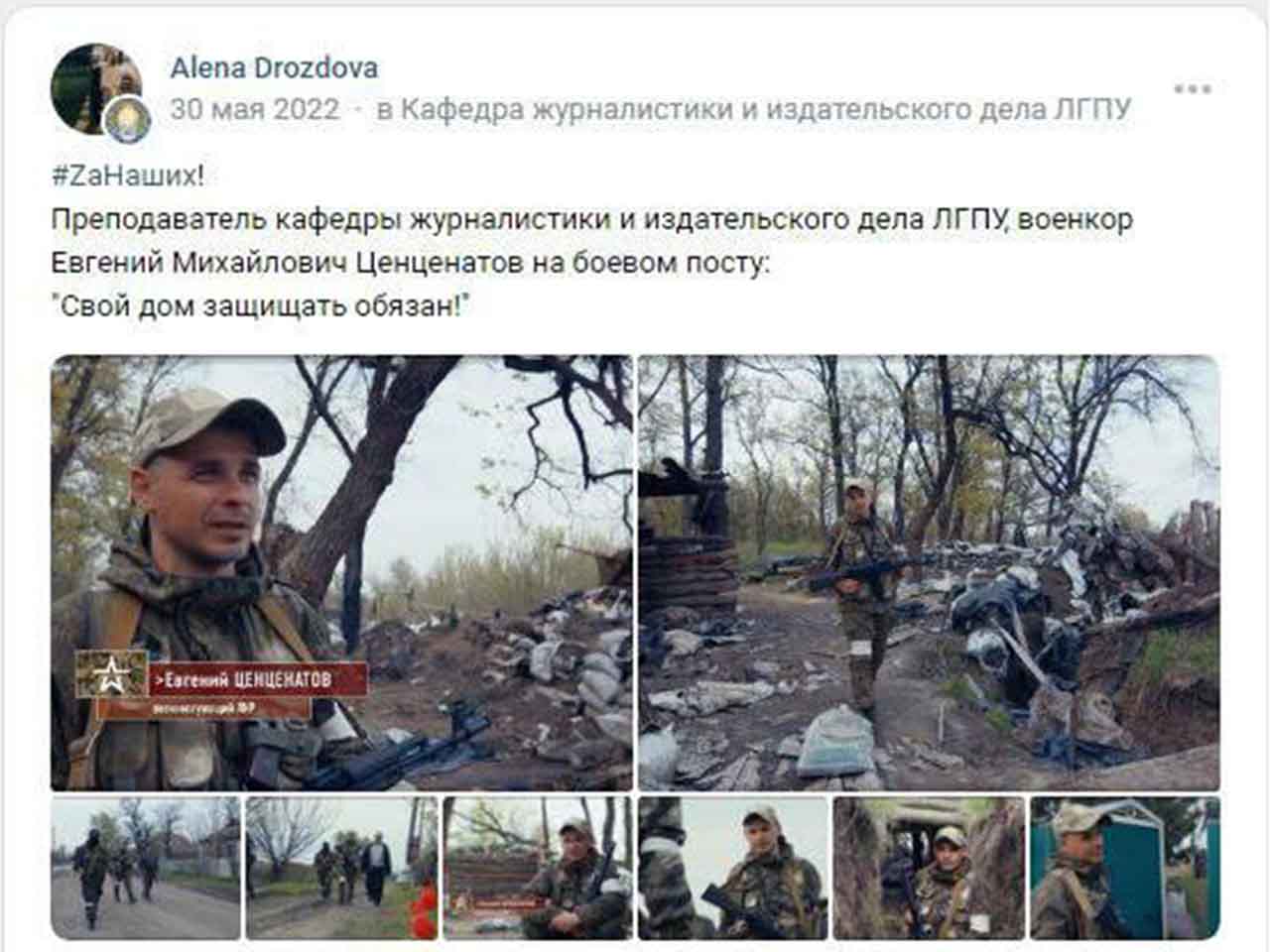 Сярод тэмаў канферэнцыі сустракаюцца пытанні аб «суб’ектнай пазіцыі ваенкораў» ды «прафесійнай этыцы ваенкора». Маецца вельмі яскравы прыклад трактоўкі этыкі ваенкора расіянамі і прарасійскімі калабарантамі, звязаны як раз з Луганскім універсітэтам. У акупаваным Луганску жыве Яўген Цанцэнатаў, які ў 2015 годзе быў занесены ў базу дадзеных сайта «Маратворац». У рэпартажы расійскага Першага каналу ад 1 мая 2022 года ён названы «дабраахвотнікам ЛНР». І гэты ж Яўген Цанцэнатаў, паводле допісу адной з супрацоўніц універсітэту Алены Драздовай у «ВКонтакте», з’яўляецца выкладчыкам кафедры журналістыкі і ваенкорам.