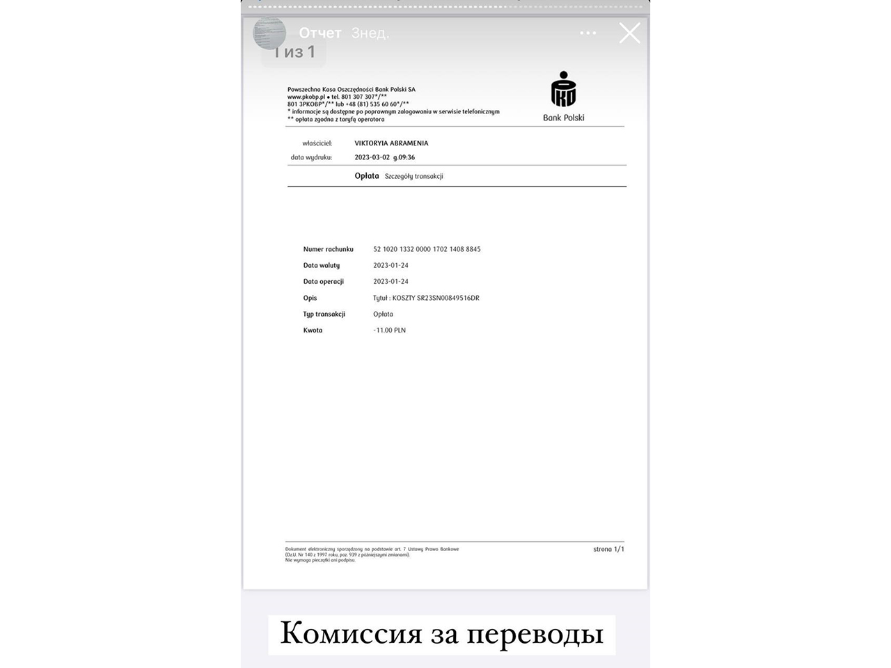 Ещё до первого отчета, 23-25 января Виктория успевает сделать два перевода польских злотых, за которые она платит комиссию.