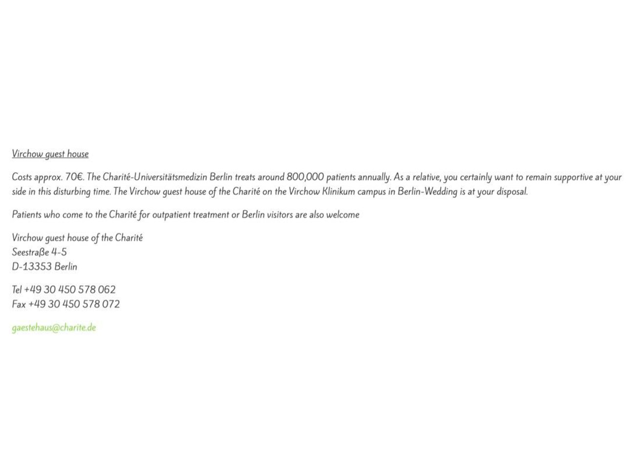 - Предоставить убедительное и подтвержденное документально обоснование необходимости лечения и операции именно в Шарите и невозможности его провести бесплатно или за меньшие суммы в медучреждениях Беларуси или Польши.