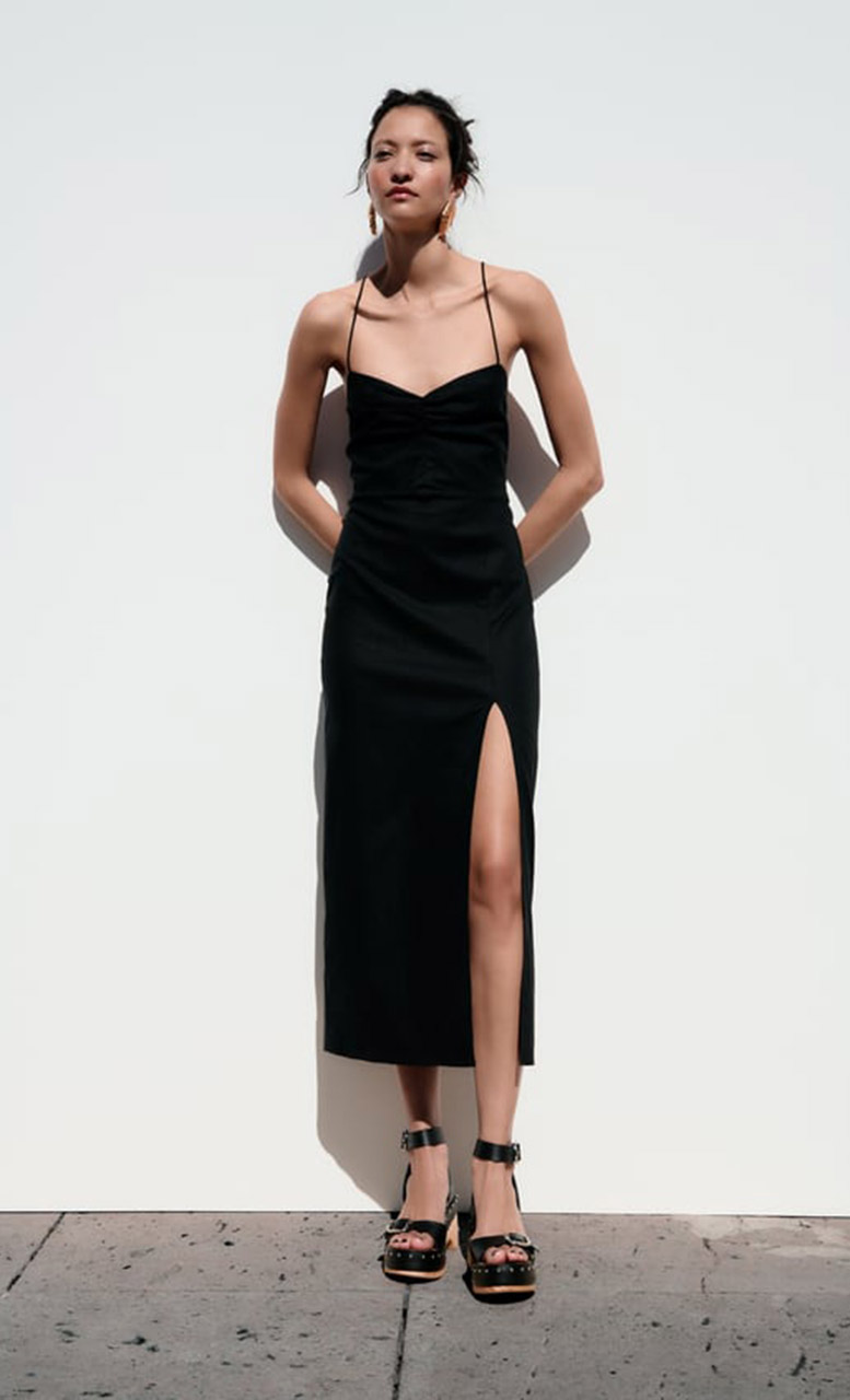В белорусской ZARA можно приобрести классическое чёрное платье из смесового льна с V-образным вырезом и тонкими бретелями за 139 BYN, в Польше такое платье обойдётся всего в 139 PLN (92 BYN).