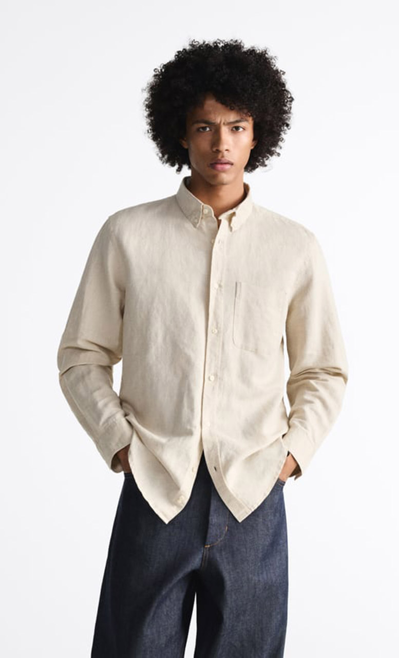 Мужчины в беларусской ZARA могут приобрести рубашку свободного кроя из смесового льна с нагрудным накладным карманом за 139 BYN, в польском магазине такая рубашка обойдётся в 139 PLN (92 BYN).
