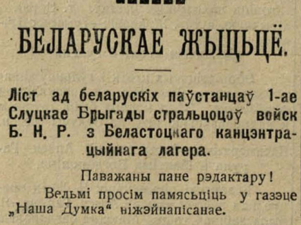 Але хоць умовы ўтрымання і палепшыліся з часоў, калі тут бушавалі эпідэміі, случчакам хацелася на волю. У красавіку яны напісалі адкрыты ліст да свайго камандавання з просьбай вырашыць іх далейшы лёс. Гэты зварот быў апублікаваны ў віленскай газеце «Наша Думка».