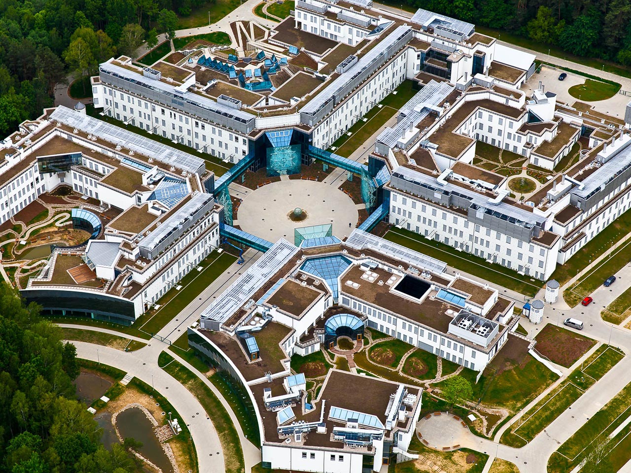 Корпус майго факультэта размяшчаецца ў лесе. Ён цалкам шкляны, вялізная тэрыторыя, паркоўкі, станцыі для веласіпедаў, розныя дворыкі, шмат зелені, скамейкі. На тэрыторыі размяшчаюцца будынкі чатырох факультэтаў, якія злучаюцца паміж сабой шклянымі мастамі. Унутры таксама зроблены сучасны рэмонт, усё адносна новае, акуратнае, эстэтычнае.