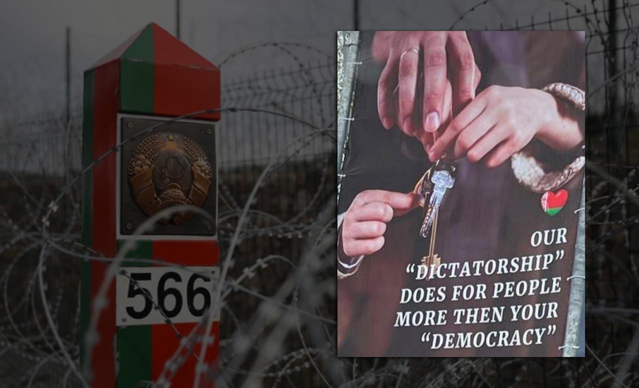 На границе с Польшей беларусы вывесили плакат: «Наша “диктатура” делает для людей больше, чем ваша “демократия”»