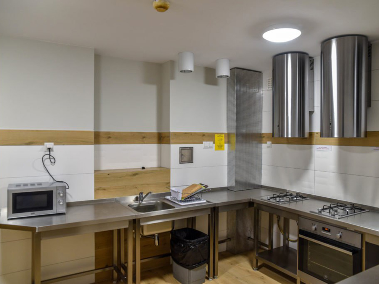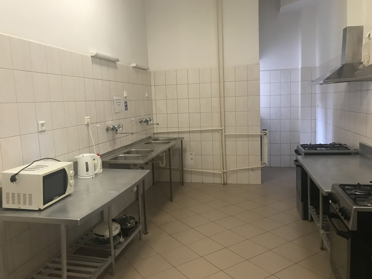 — Имеются две кухни на этаж, в которых находятся духовой шкаф, микроволновка и электрическая плита. Также, в общежитии есть лифт, 5 стиральных машин, и комната для сушки вещей.