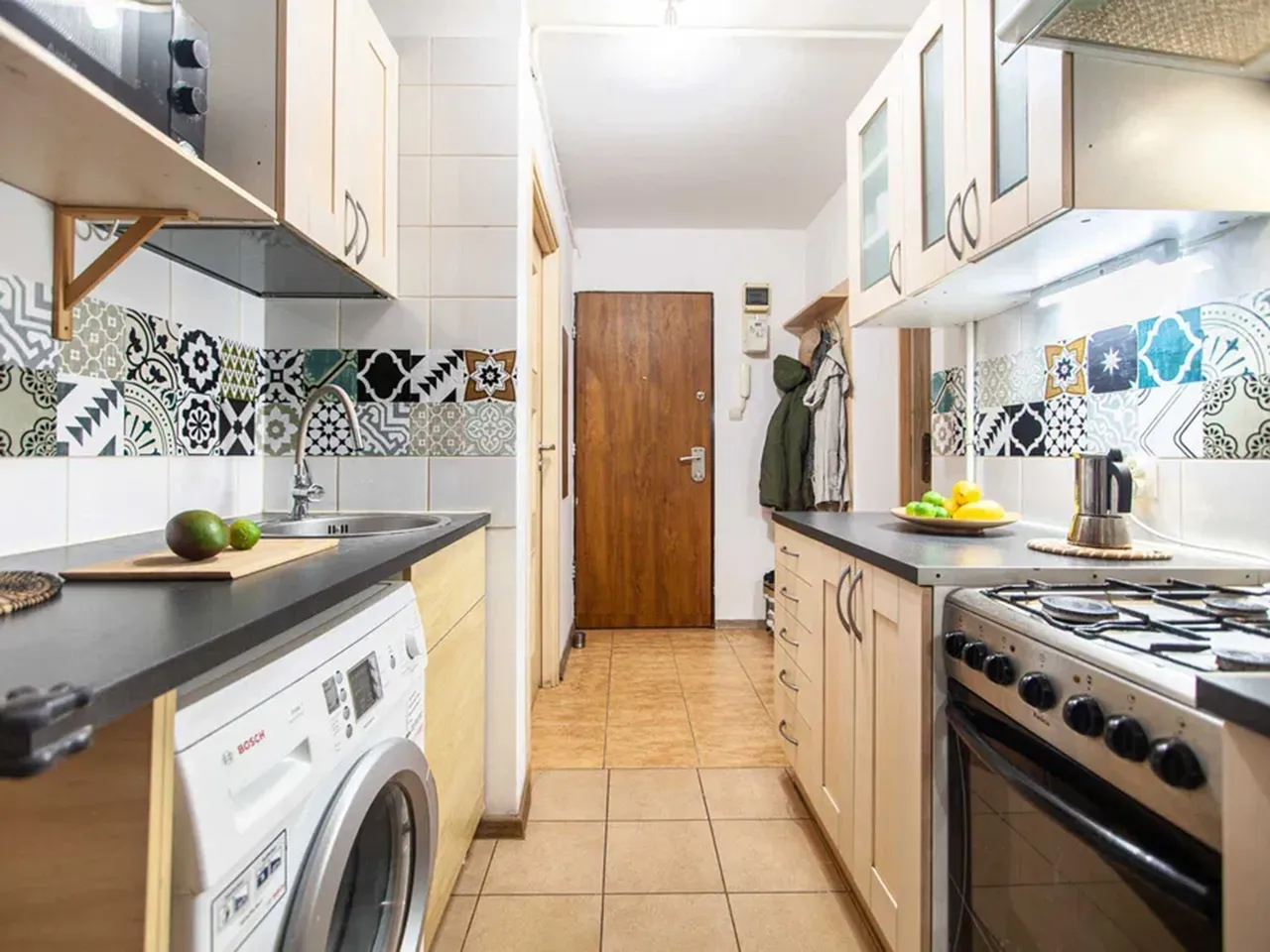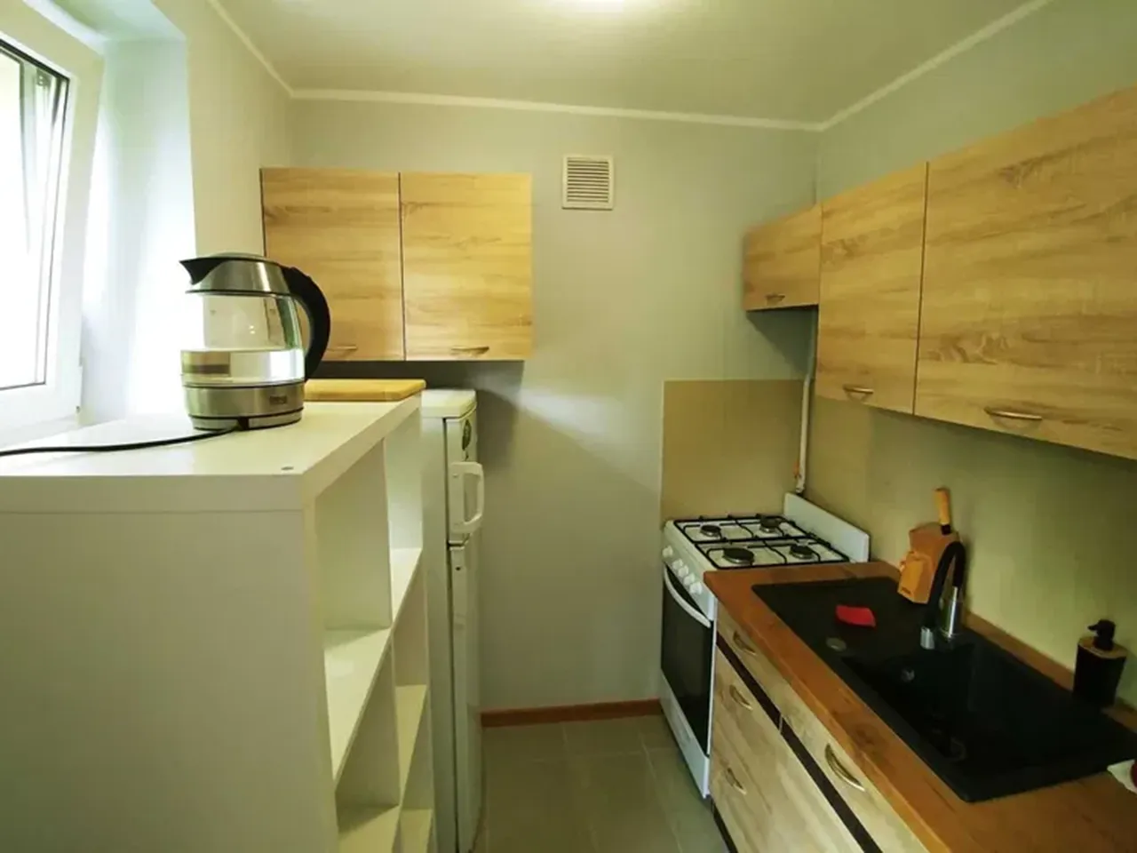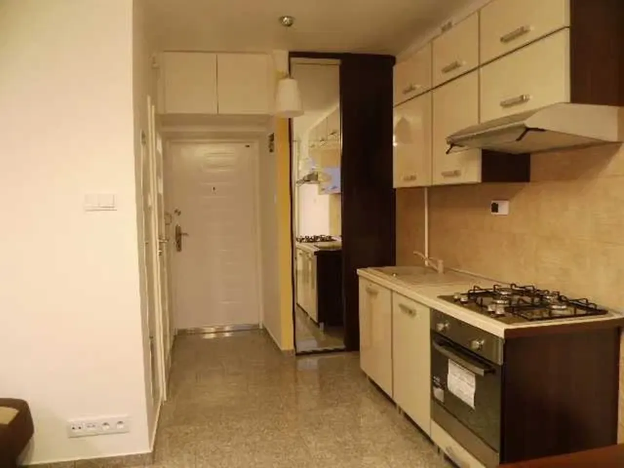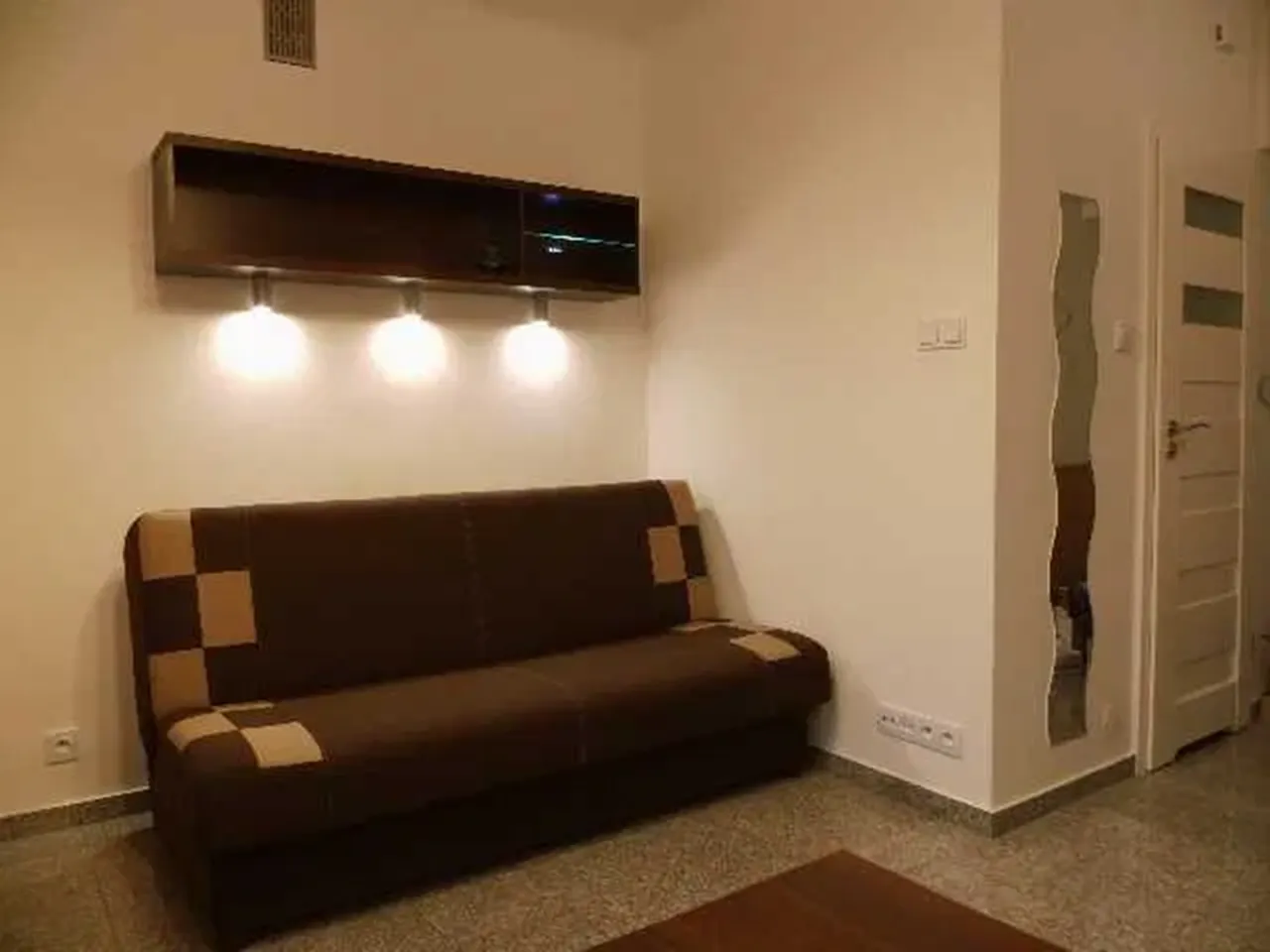Если уровень вашего комфорта — только отдельная квартира, то данный вариант может вас заинтересовать. За чуть более 2 000 злотых в месяц предлагается довольно маленькая (20 м2) и слегка темноватая «кавалерка» с полом из экогранита — по какой-то причине акцент в объявлении сделан именно на простоту уборки, отсутствие пылесборников и положительное влияние этого на людей, страдающих от аллергии или астмы.
