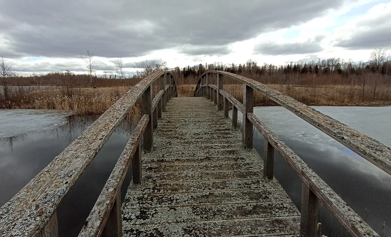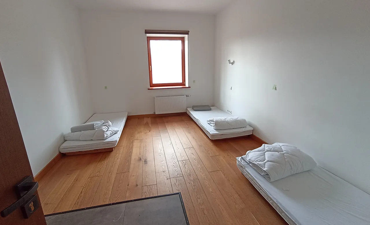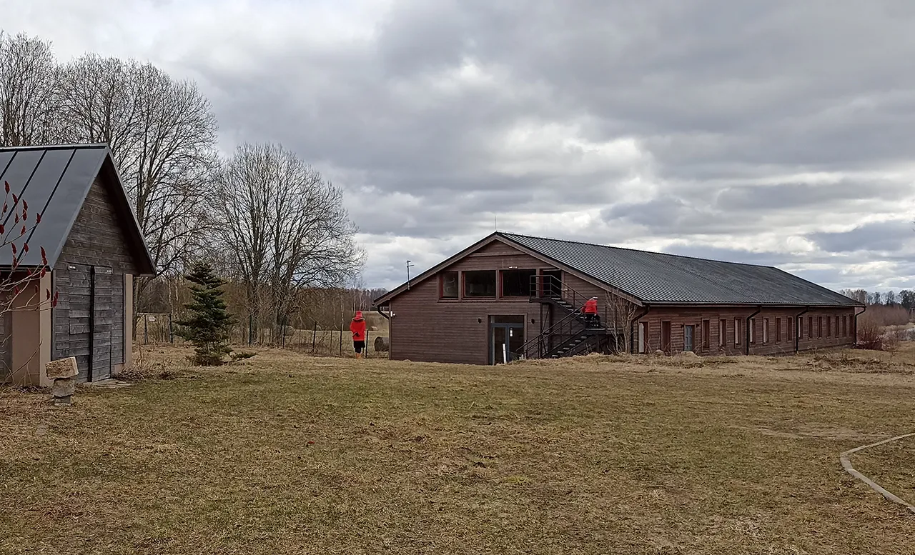 Я был на ретрите в апреле, локация находилась в глуши — в двух километрах от деревушки недалеко от одного из балтийских городов. Место живописное. Лес, поле, стога сена, красивый мостик через озеро, на котором ещё были остатки льда. Справа стоит длинное здание — там находились комнаты для студентов. Слева — двухэтажны домик, в который нужно зайти, чтобы зарегистрироваться. Посередине колодец с навесом и лавочками. Вокруг него аккуратно лежат сумки и туристические рюкзаки прибывших.
