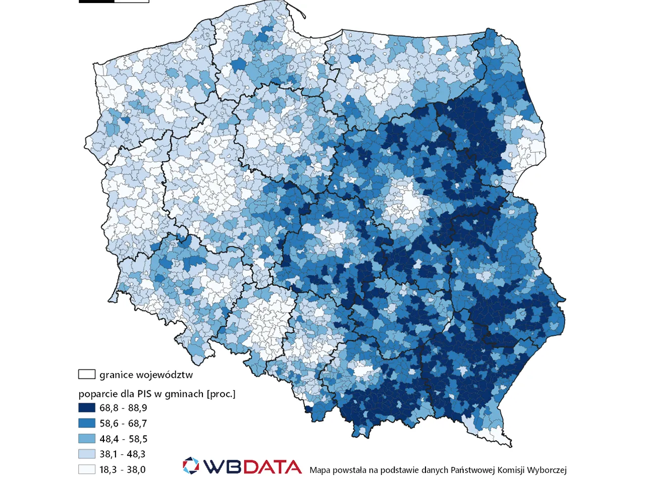 За «Право и справедливость» больше всего голосуют на востоке страны. В основном, это религиозные люди правых взглядов старше 55 лет и без высшего образования.
