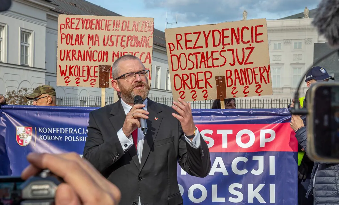 Официально «Конфедерация» российскую агрессию не поддерживает, однако выступает против приёма украинских беженцев и постоянно напоминает про Волынскую резню и «бандеровцев», транслируя пророссийские нарративы.