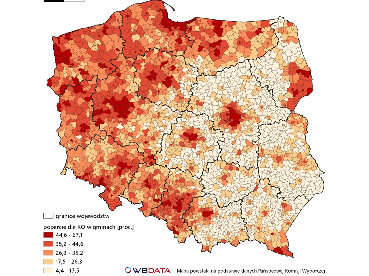 За PO, в основном, голосуют на западе страны, но один и «очагов» поддержки находится на юго-востоке Подляшья. Сторонники «Гражданской платформы» — нерелигиозные жители крупных городов, которые придерживаются левых взглядов и имеют высшее образование.
