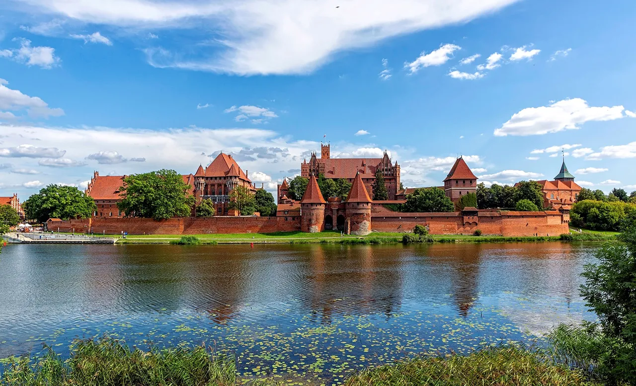 Замок в Мальборке в Поморском воеводстве — самый большой сохранившийся средневековый замок и самая мощная средневековая крепость в Европе, а также эталон кирпичной готики. Строительство замка было начато тевтонскими рыцарями в XIII веке и длилось 30 лет. В последующие века, когда Мальборк стал столицей Тевтонского ордена, крепость значительно расширилась. Интересно, что при строительстве в замке была установлена инновационная для тех времён система центрального отопления.