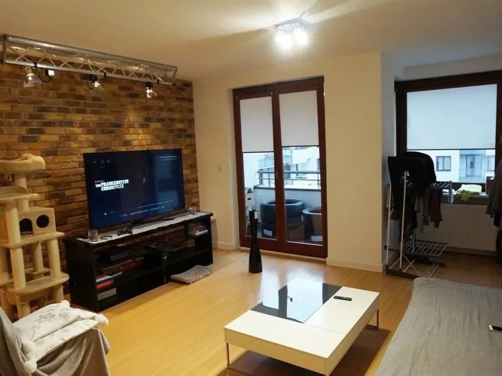 Судя по фото, квартира полностью обставлена и готова к приезду новых хозяев: от предыдущего жильца осталось много вещей. Торги начнутся в 12:00 в здании Районного суда Варшавы-Мокотува по адресу: Ogrodowa, 51, зал № 303.