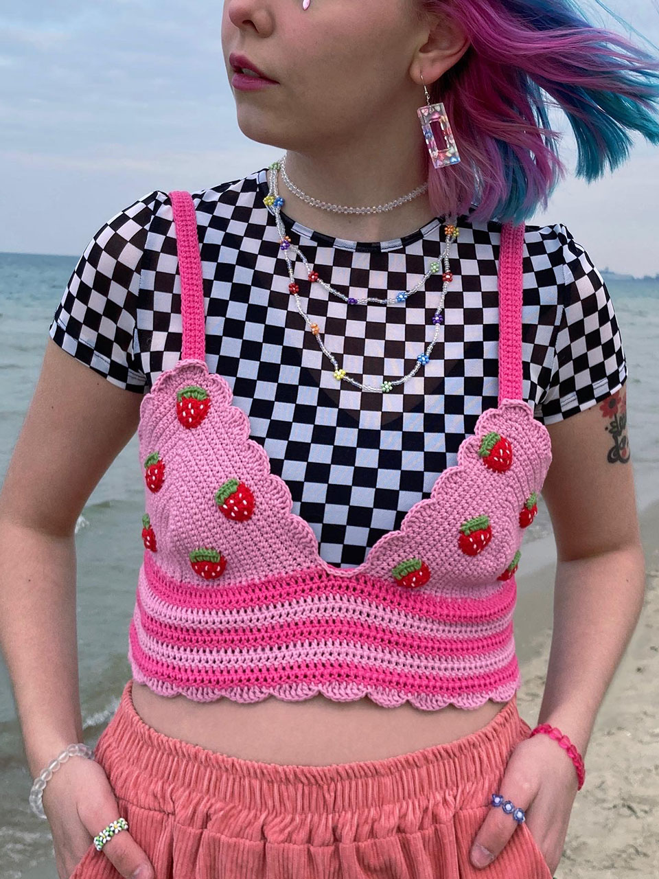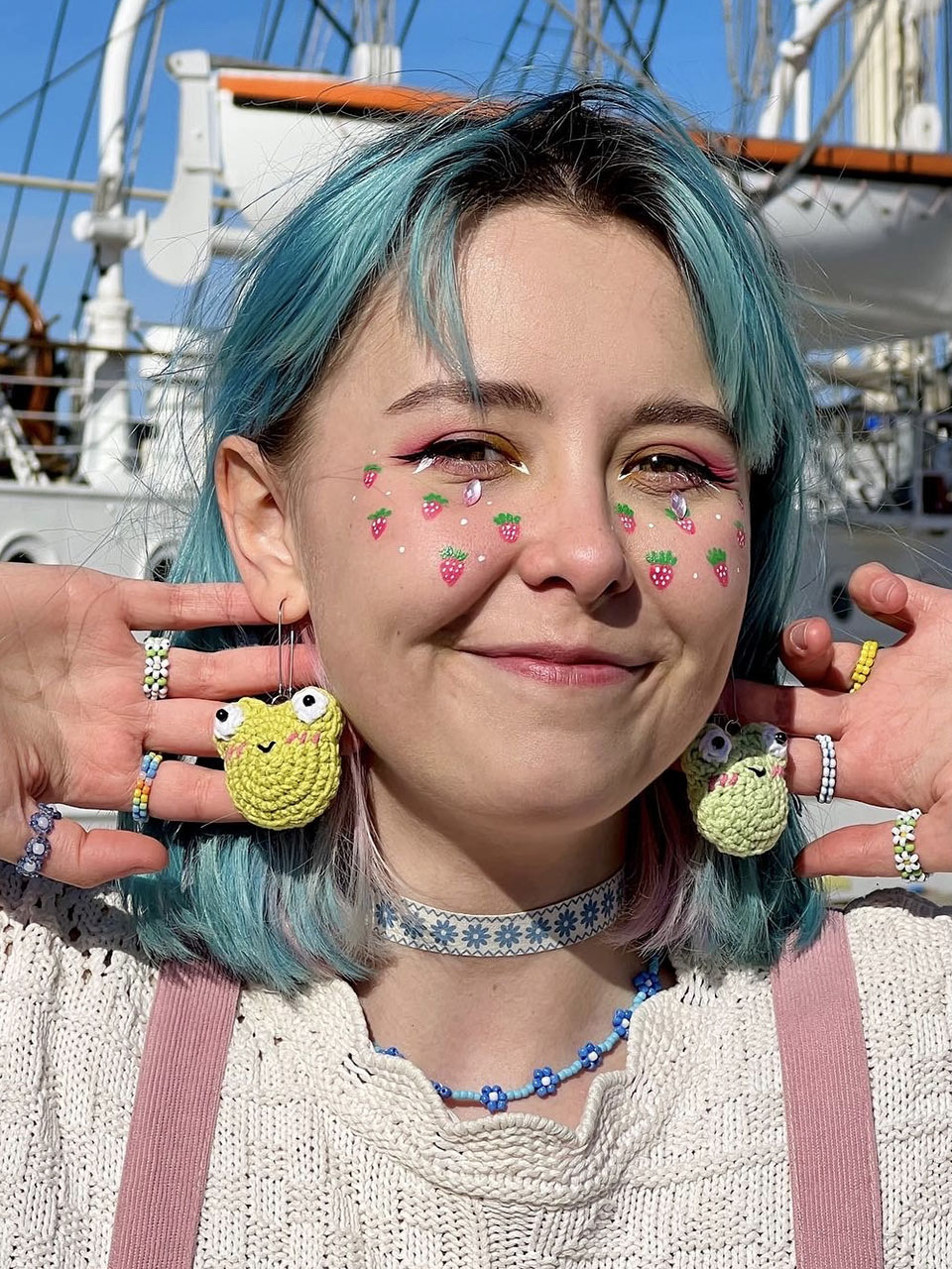Топы с клубничками, серёжки с жабками и шапки в виде мухомора. MOST рассказывает, как беларуска из Гданьска вяжет крючком необычные вещи и украшения, а затем продаёт их на маркетах.