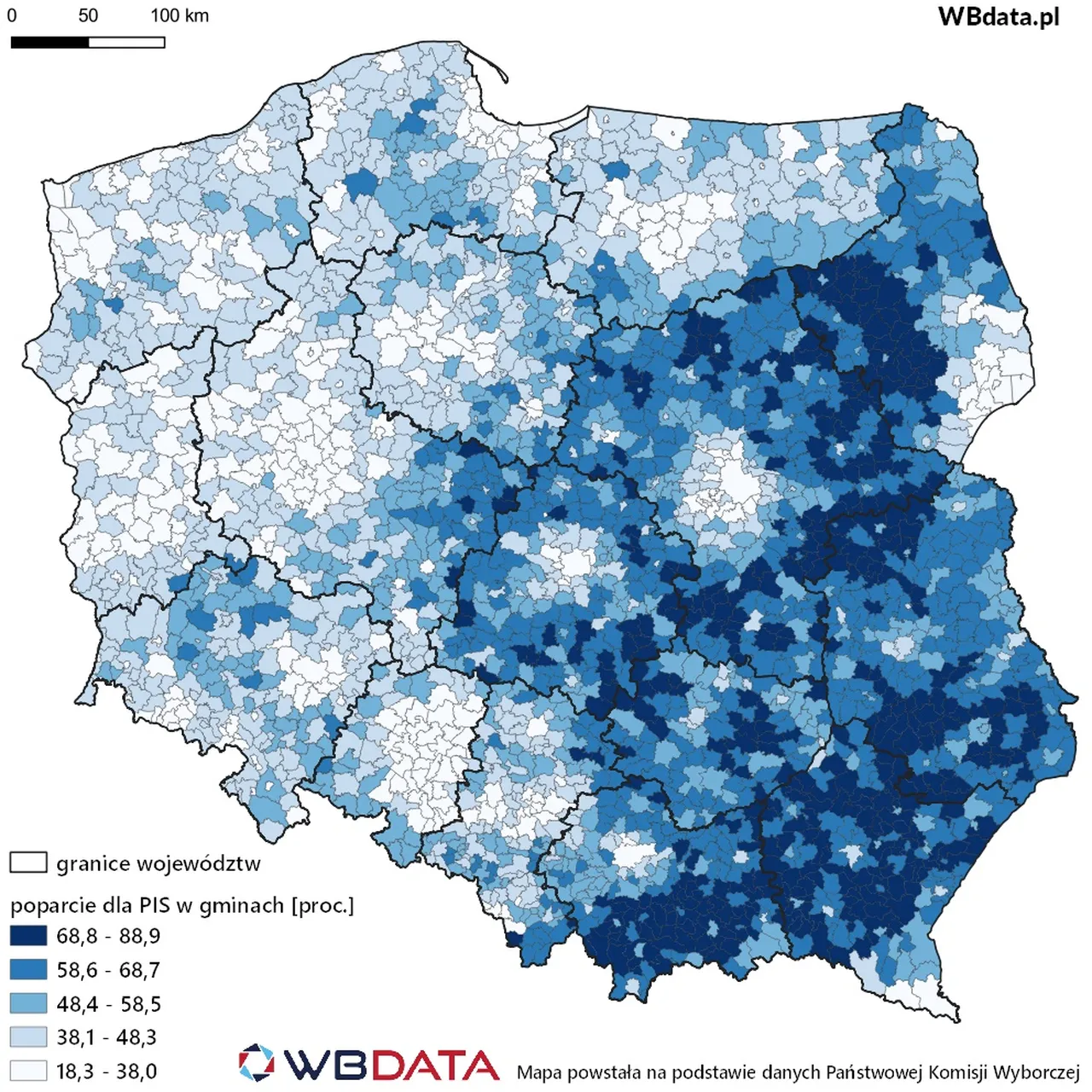 Как голосовали за «ПиС» в 2019 году. Источник: Wbdata.pl