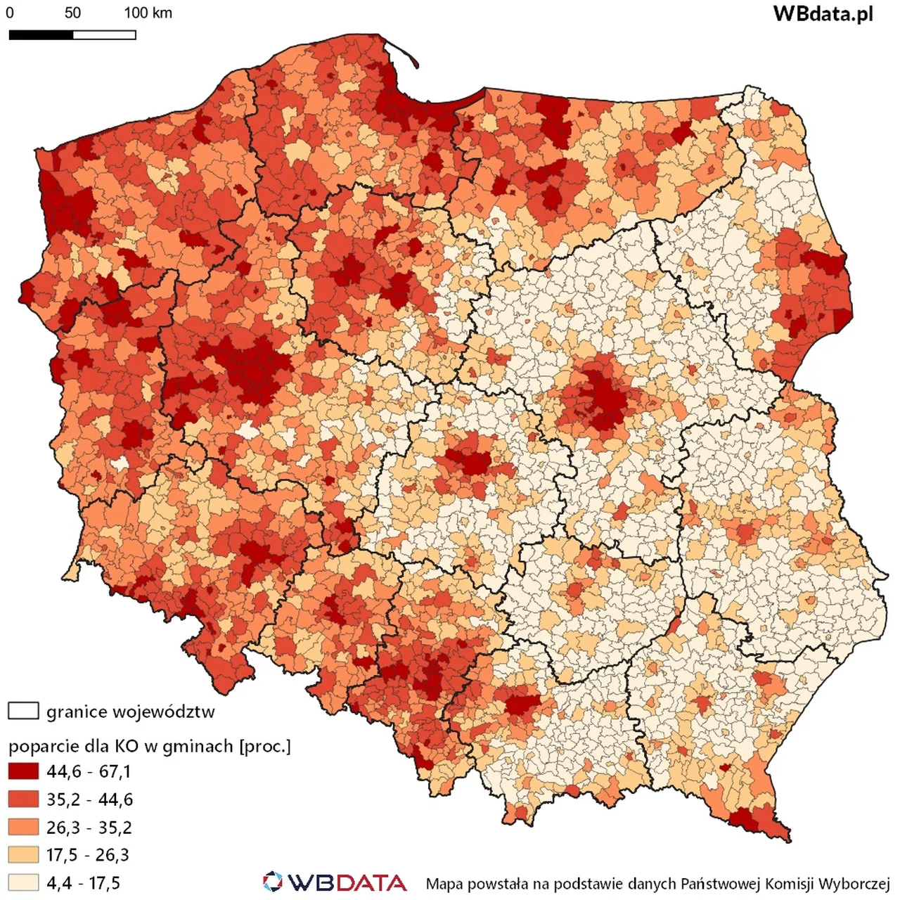 Как голосовали за «Гражданскую коалицию» в 2019 году. Источник: Wbdata.pl