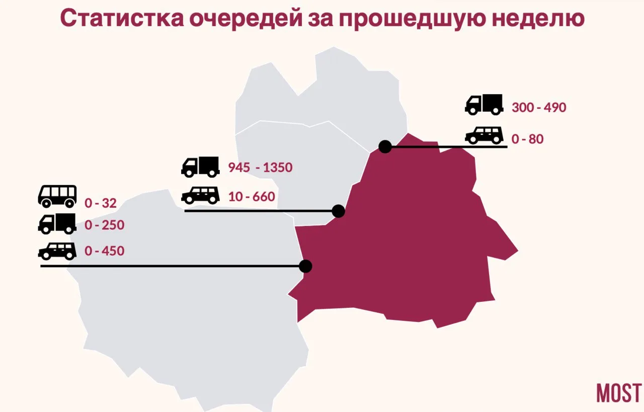 Между тем сами очереди становятся продолжительнее. На прошлой неделе дополнительным фактором стали длинные выходные: беларусы активнее выезжали в соседние страны.