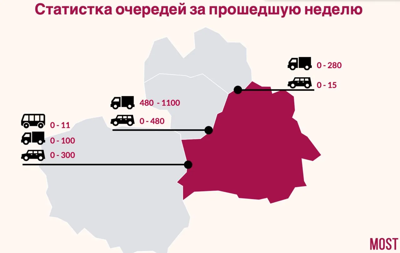 Стабилизировались очереди во всех пунктах пропуска на границе Беларуси и ЕС — мониторинг MOST