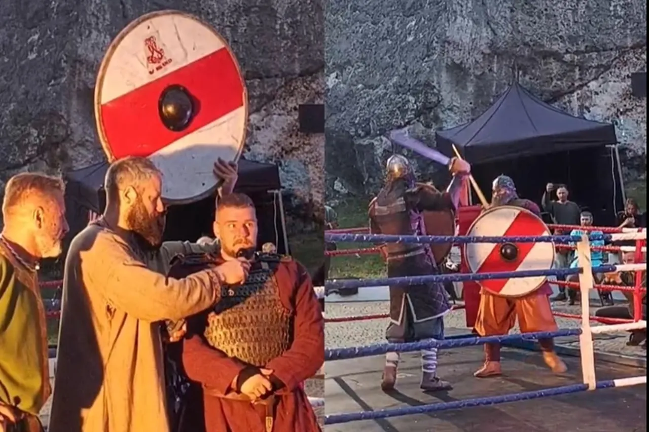 «Было гонарам прыняць такі бой». Беларускі рэканструктар выступіў на польскім рынгу і зламаў меч аб суперніка