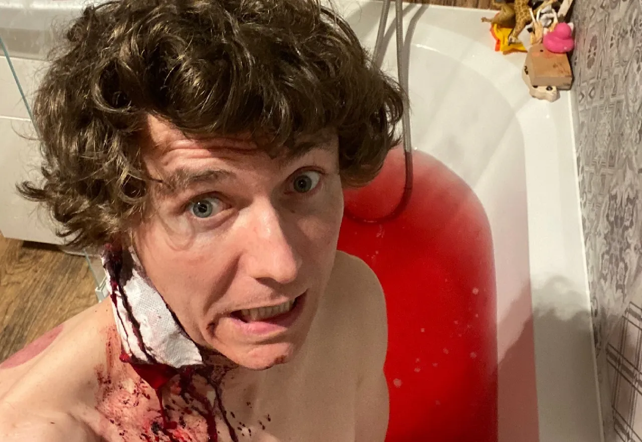 — Окровавленный муж сидит в кроваво-красной воде, при этом кровь течёт из шеи. Аня невольно вскрикнула и рука автоматически закрыла рот. При этом я улыбался и смог успокоить жену, что со мной всё в порядке.