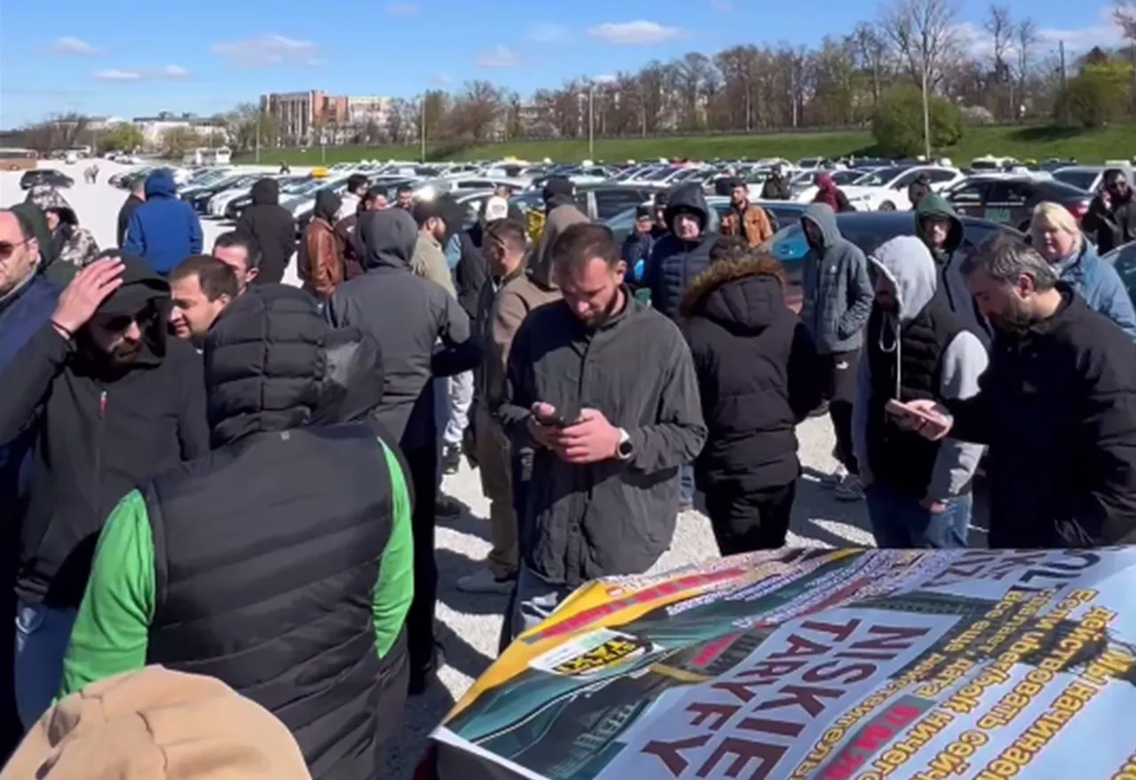 Акция протеста таксистов в Варшаве. 7 апреля 2025 года. Скриншот видео в Telegram-чате Strajk taksówkarzy Warszawa (Uber / Bolt / FreeNow)