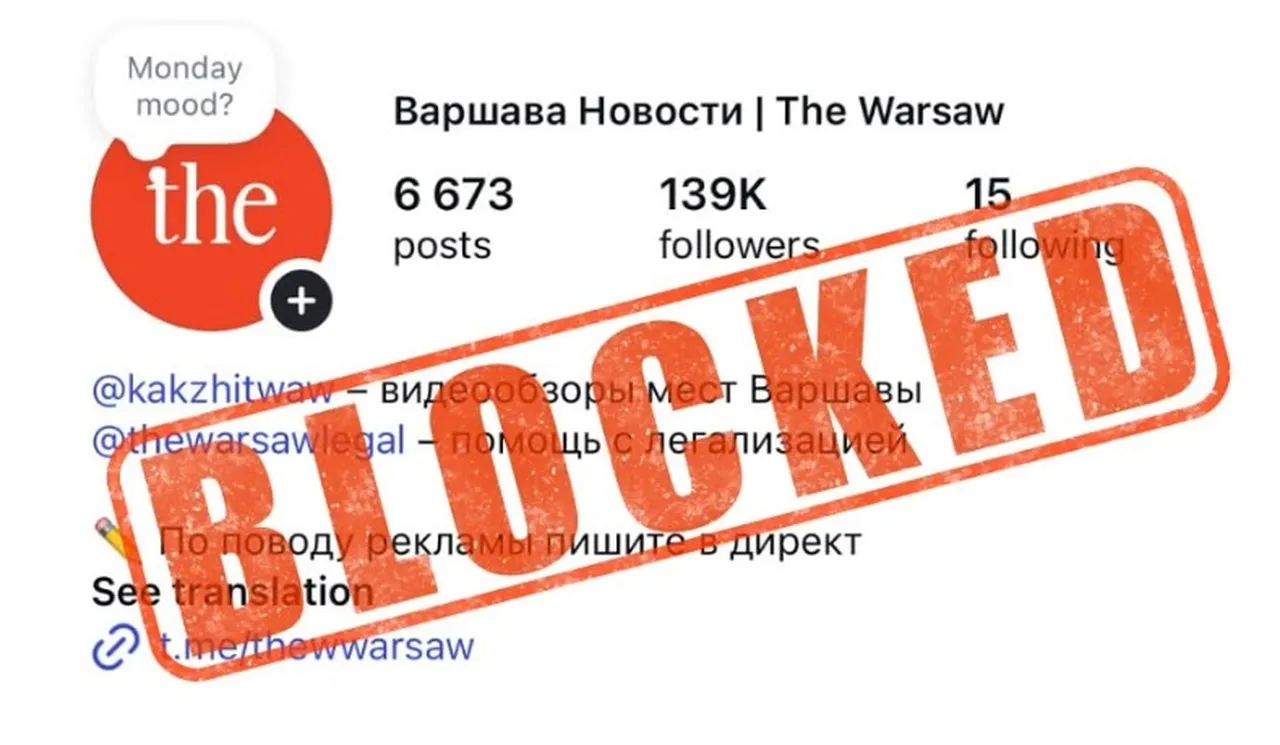 Instagram заблокировал аккаунт The Warsaw, один из крупнейших русскоязычных пабликов о Варшаве. Он существовал шесть лет, и на момент блокировки у него было более 139 тыс. подписчиков. Сейчас ресурс обновляет новый аккаунт в соцсети и пытается добиться разблокировки старого. Но в издании признают, что шансов на это мало.