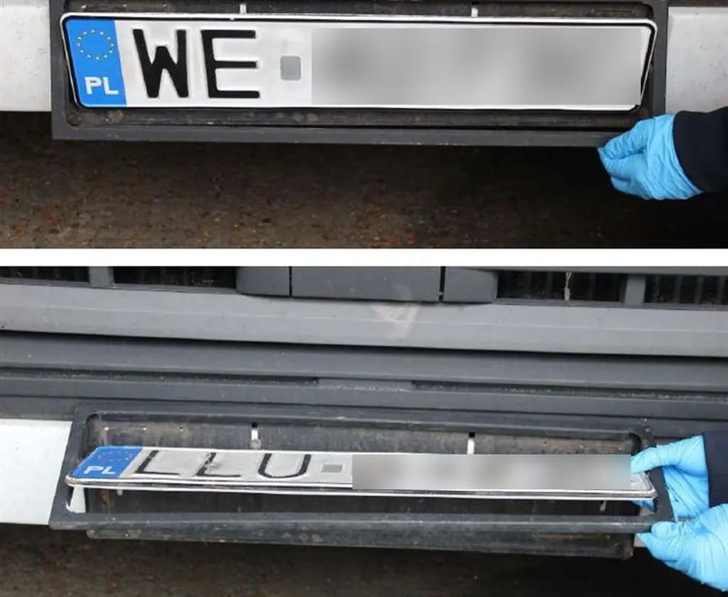 На грузовик обратили внимание британские пограничники в порту Дувра, куда прибывают паромы из континентальной части Европы. В машине, якобы перевозящей запчасти для завода Bentley, была необычная рамка для номерных знаков — из нее торчали кабельные стяжки. Оказалось, что в рамке закреплены сразу два номерных знака, которые можно заменить, перевернув. Один номер был якобы зарегистрирован в Варшаве, второй — в Лукуве Люблинского воеводства.
